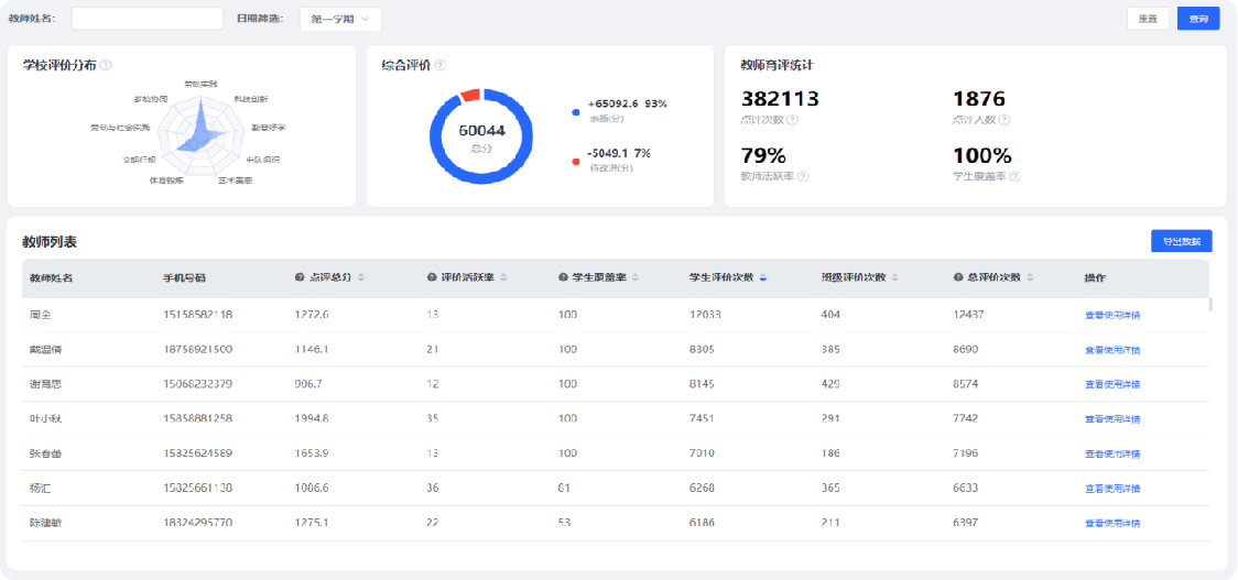 學(xué)校育評進(jìn)度報告:教研工作好顧問、實時監(jiān)測教師日常各項育評工作開展情況