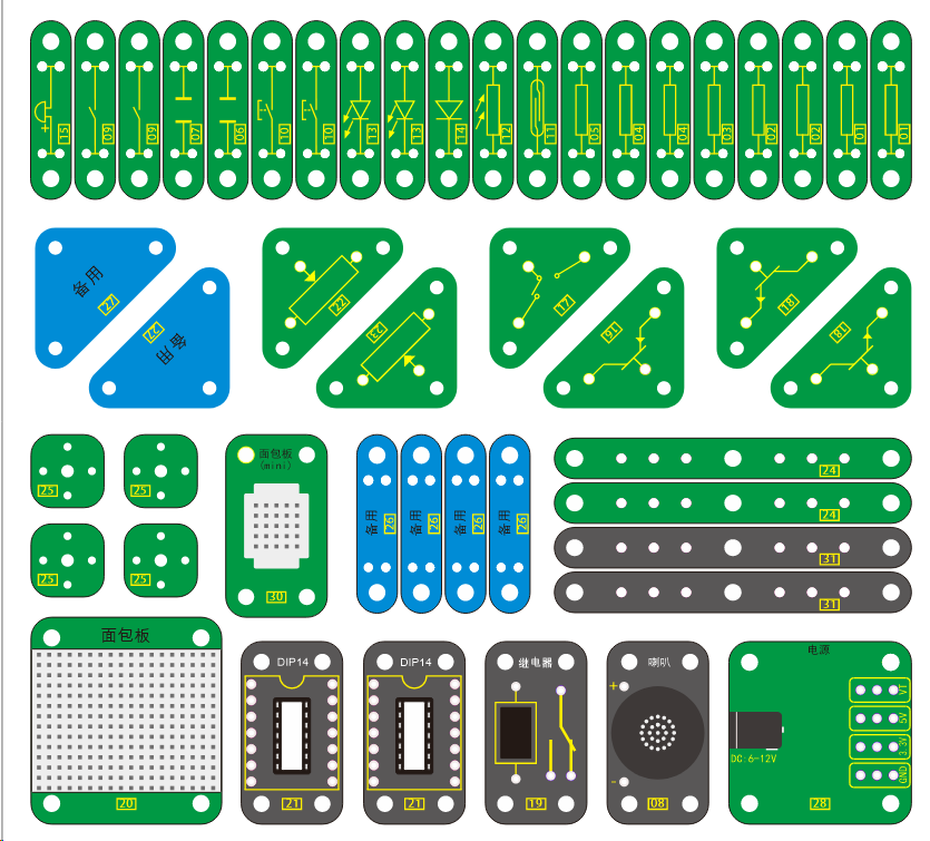 最后由PCB組成的綜合實驗案例,以簡單綜合焊接電子套件形式組成,由PCB板、元器件組成,主要用來考核學(xué)生的電子焊接技術(shù),與電子產(chǎn)品調(diào)試的能力。主要案例包括:1安裝與調(diào)試一個多諧振蕩器、2安裝與調(diào)試555集成電路組成的多諧振蕩器、3安裝與調(diào)試JN6201音樂集成電路、4、555集成電路“叮咚”雙音電子門鈴的安裝與調(diào)試、5無線遙控門鈴的設(shè)計、6單一溫度熱水自動控制系統(tǒng)、7熱水溫度自動控制系統(tǒng)等實驗案例。