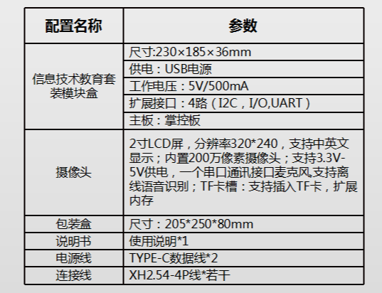 中小學(xué)信息技術(shù)教育套裝以掌控板主機(jī)模塊作為主板單元和傳感器單元組成,通過擴(kuò)展接口,主板與傳感器單元連接成功,無需外接繁雜的線路,搭配一條TYPE-C數(shù)據(jù)線就可以實(shí)現(xiàn)圖形化編程及MicroPython語言編程,是一種配套中小學(xué)信息技術(shù)物聯(lián)網(wǎng)與人工智能,在人工智能技術(shù)、物聯(lián)網(wǎng)技術(shù)等應(yīng)用領(lǐng)域有著十分重要意義的教育套裝。滿足中小學(xué)信息技術(shù)教材需求,可實(shí)現(xiàn)信息技術(shù)傳感與控制、開源硬件項(xiàng)目設(shè)計(jì)等內(nèi)容的教學(xué),實(shí)現(xiàn)游戲化教學(xué)、物聯(lián)網(wǎng)教學(xué)、STEAM教學(xué)等多種教學(xué)應(yīng)用。 通過平臺(tái)的學(xué)習(xí),可以掌握掌控板控制原理MicroPython語言的編程、物聯(lián)網(wǎng)技術(shù)以及人工智能技術(shù)。